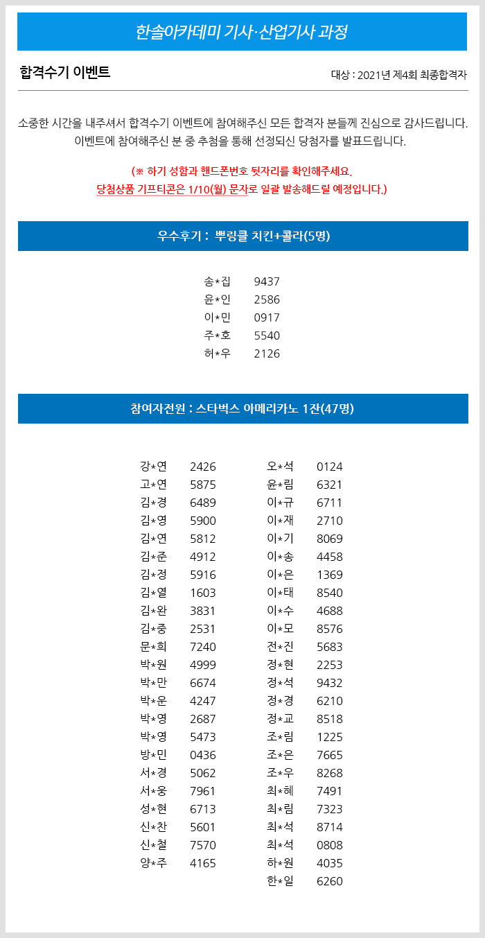 2021년 제4회 건축기사 합격수기 이벤트 당첨자 발표