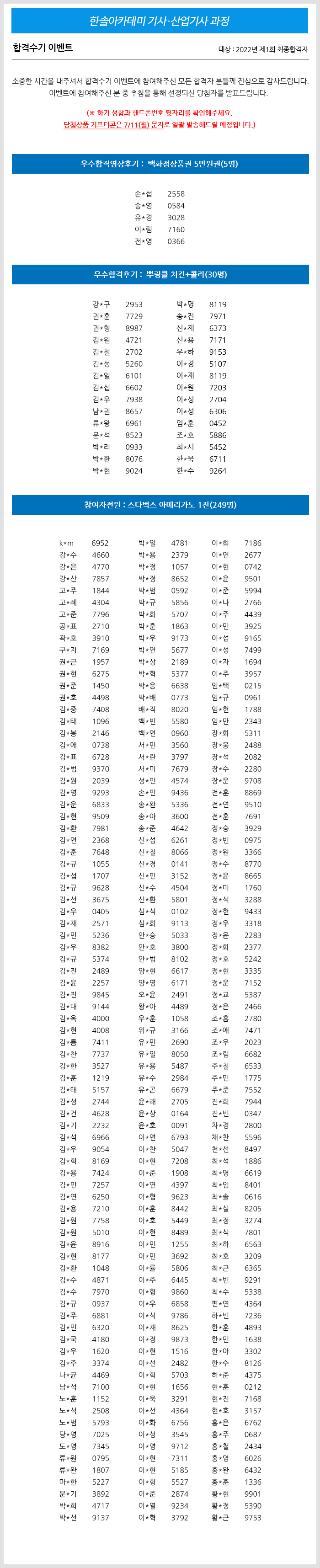 2022년 제1회 건축/전기/토목/건축설비/공조냉동기계(산업)기사 합격수기 이벤트 당첨자 발표
